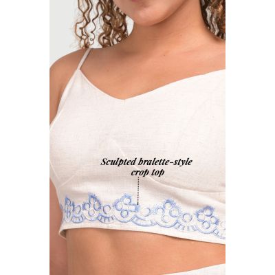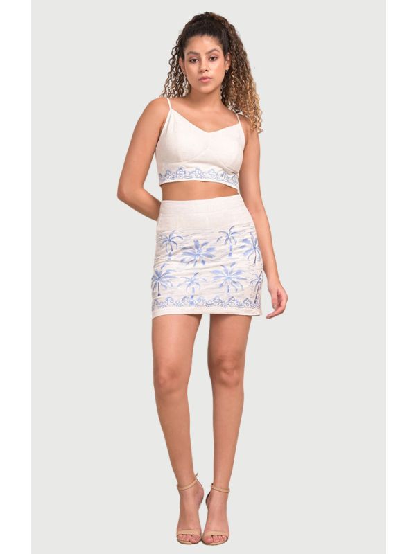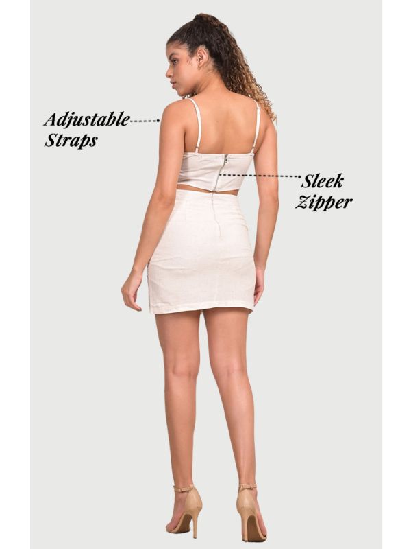 This YUSHE 2-piece set is made to turn sidewalks into runways. Featuring a sculpted bralette-style crop top and a matching mini skirt, this ensemble is your ticket to making an unforgettable impression wherever you go—from rooftop parties to beach brunches.